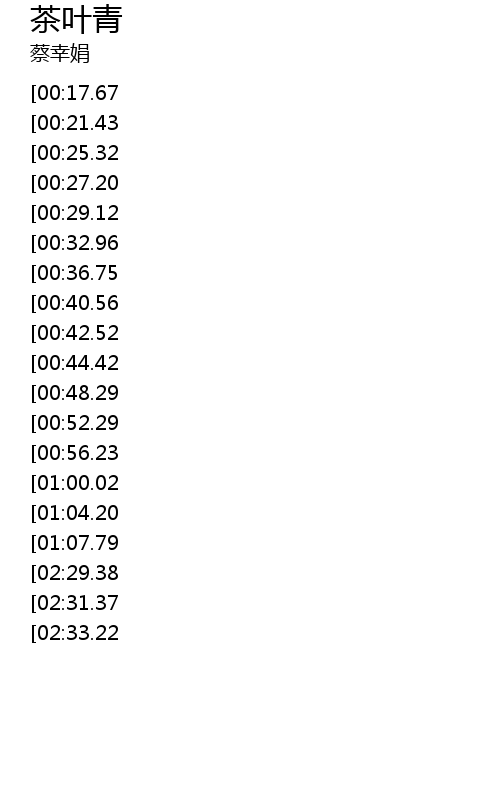 | [02:00.09][00:42.52] | cai ya cai cha qing ya |