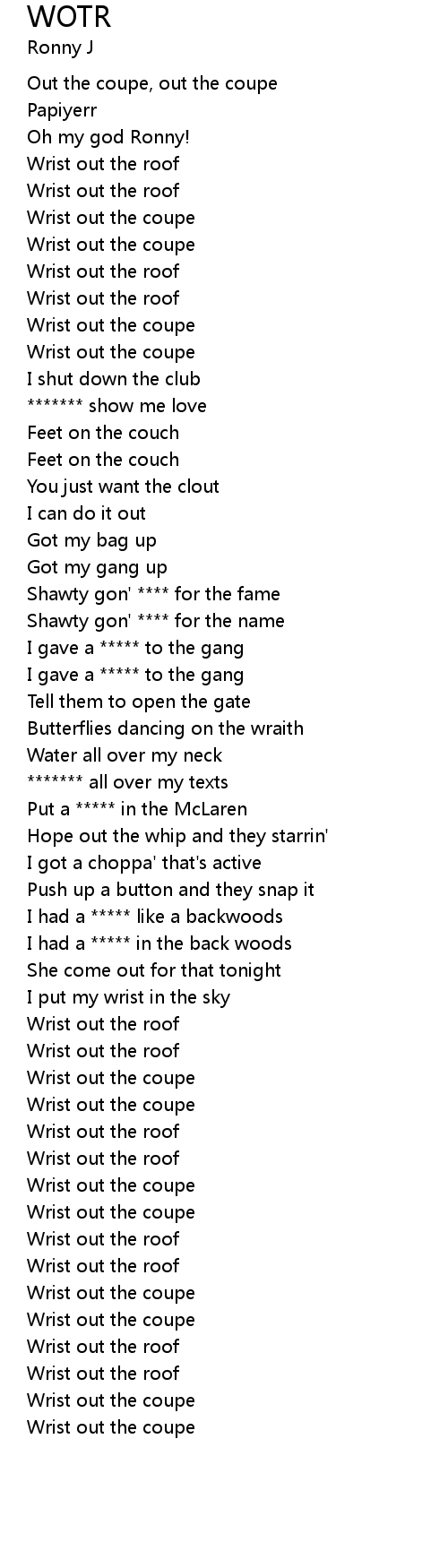 | [01:15.95] | Wrist out the roof |