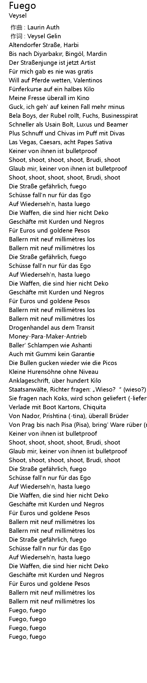 | [00:57.53] | Die Straße gefährlich, fuego |