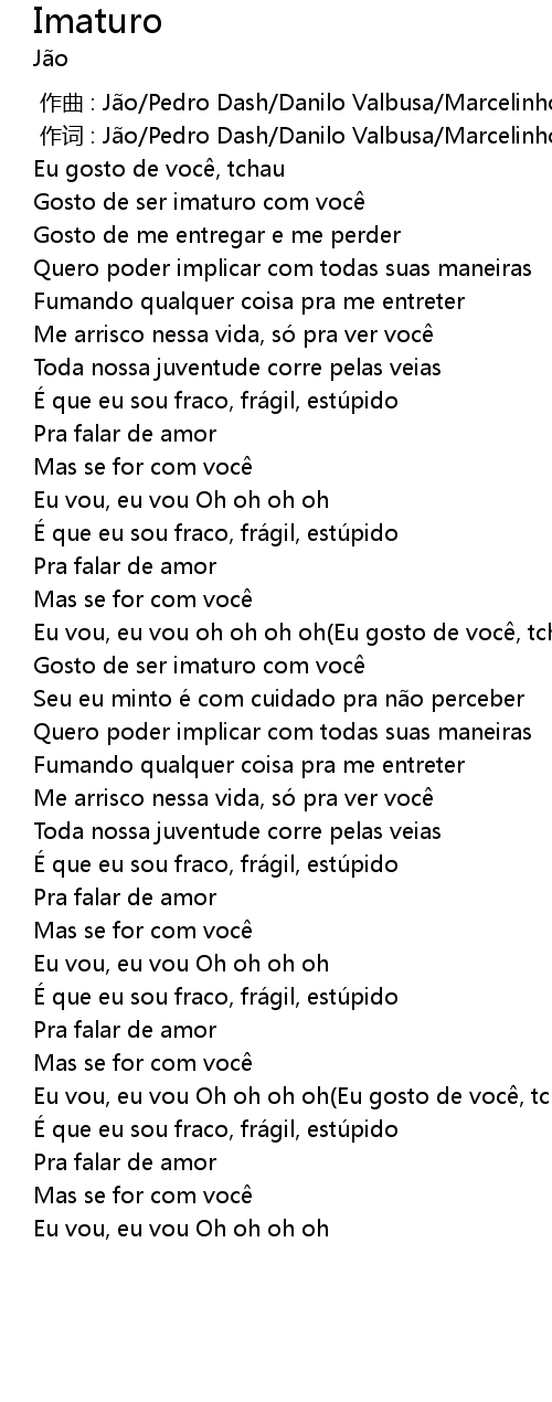 | [01:28.42] | Gosto de ser imaturo com voc |