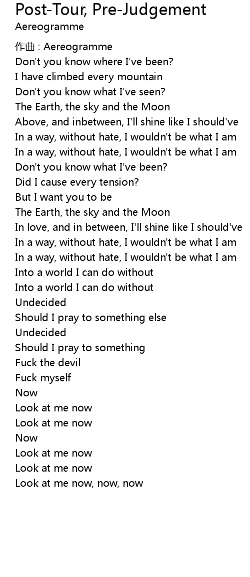 | Song | Post-Tour, Pre-Judgement |
