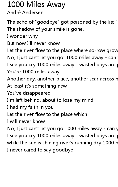 I see you cry 1000 miles away - wasted days are passing by 1000 miles away - while the sun is shining river's running dry 1000 miles away - |