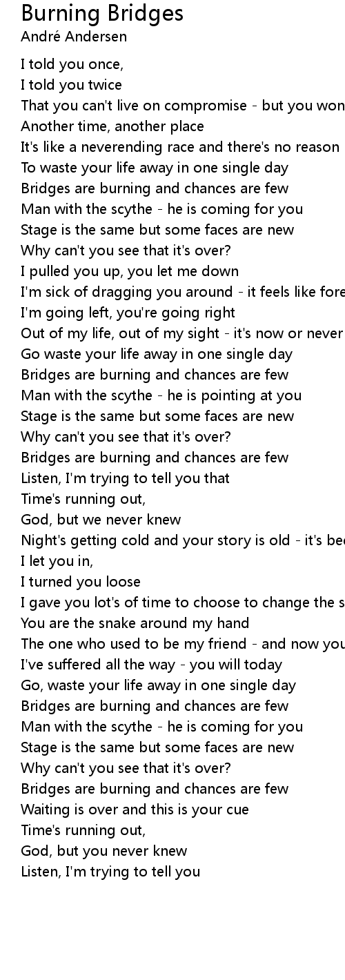 Bridges are burning and chances are few |