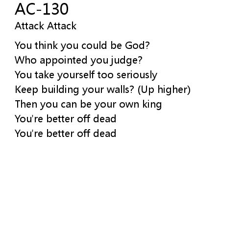 | Song | AC-130 |