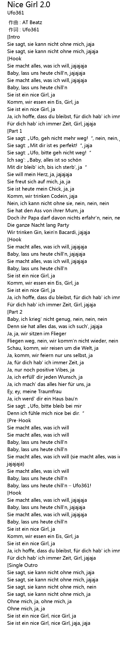 | [02:21.832] | Baby, lass uns heute chill'n – Ufo361! |
