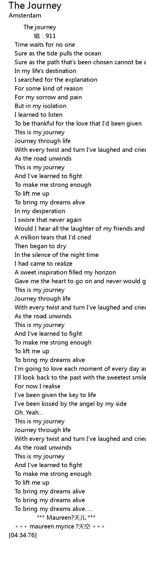 | [02:26.13] | With every twist and turn I've laughed and cried |