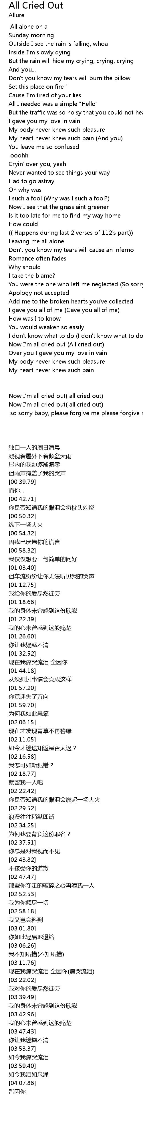 | [112] | Over you so sorry baby, please forgive me please forgive me |
