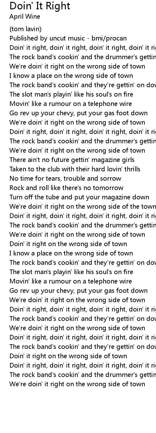 Doin' it right, doin' it right, doin' it right, doin' it right |