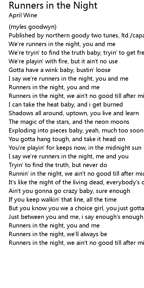 We're runners in the night, you and me |