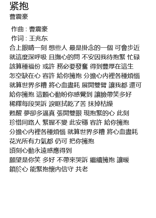 | Song | 紧抱 |