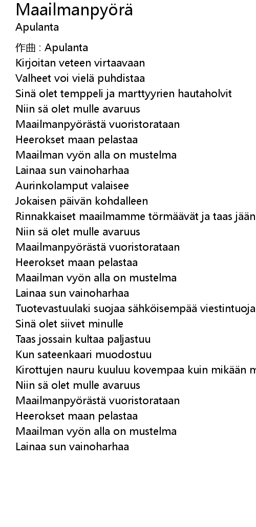 Maailmanpyörä Maailmanpy r Lyrics