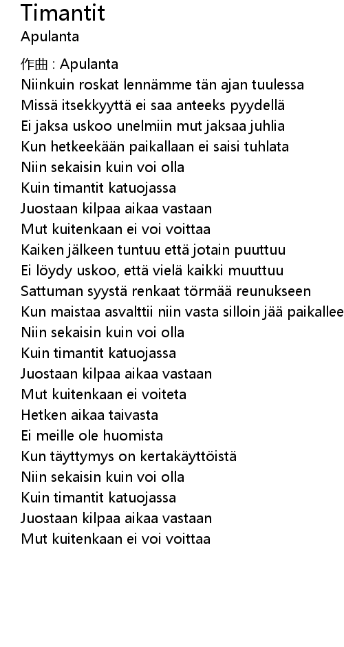 | Song | Timantit |