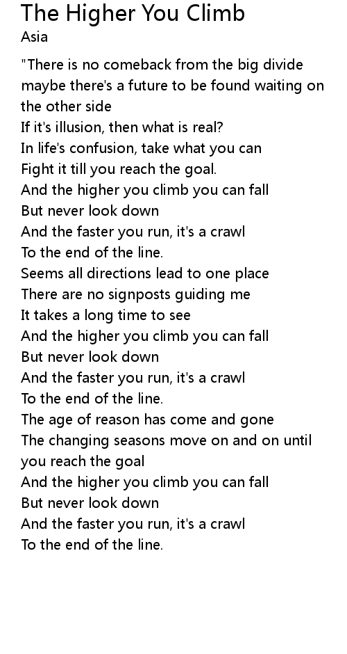 | And the higher you climb you can fall | |
