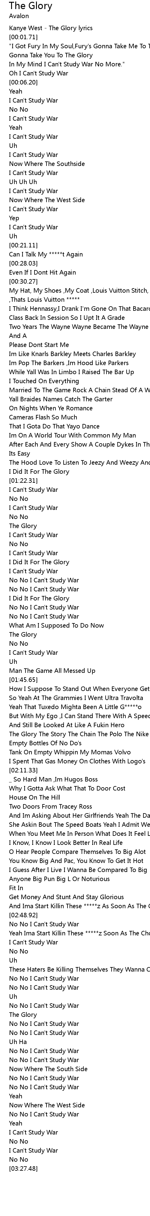 The Glory The Story The Chain The Polo The Nike The Chronic |