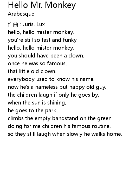 | hello, hello mister monkey. | |