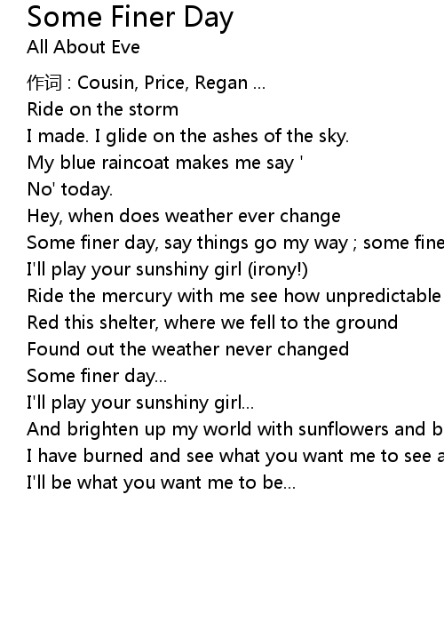 | Some finer day, say things go my way some finer day, | |