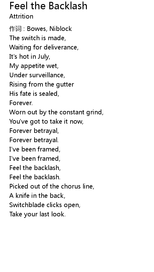 | Feel the backlash, | |