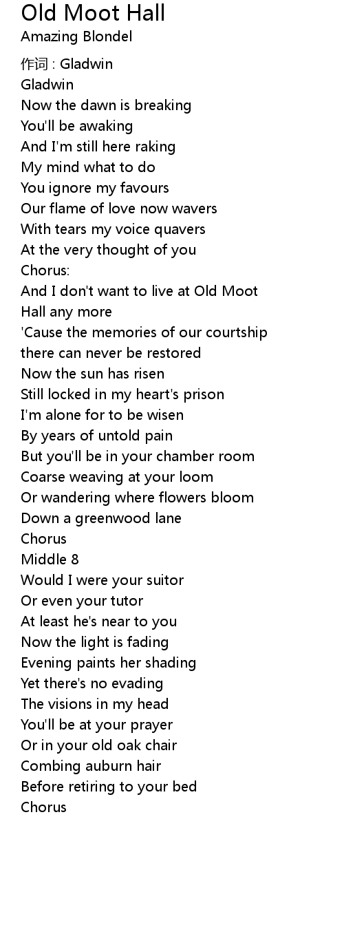 | Song | Old Moot Hall |