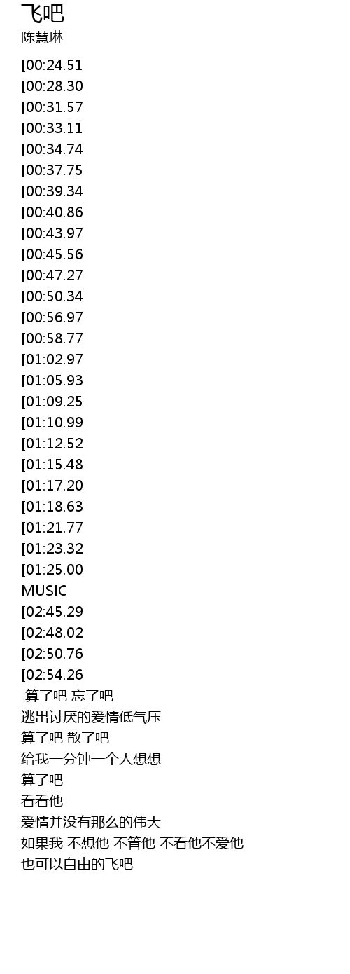 | [03:19.32] | 也可以自由的飞吧 |