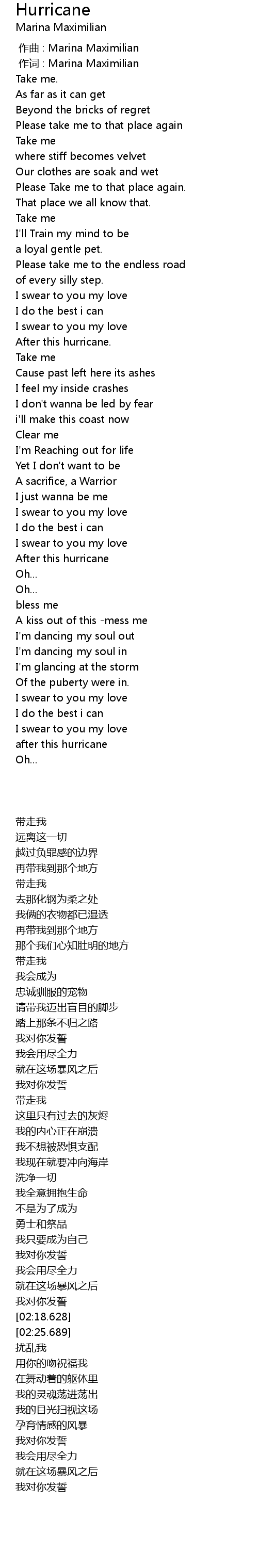 | [00:01.000] | zuò cí : Marina Maximilian |