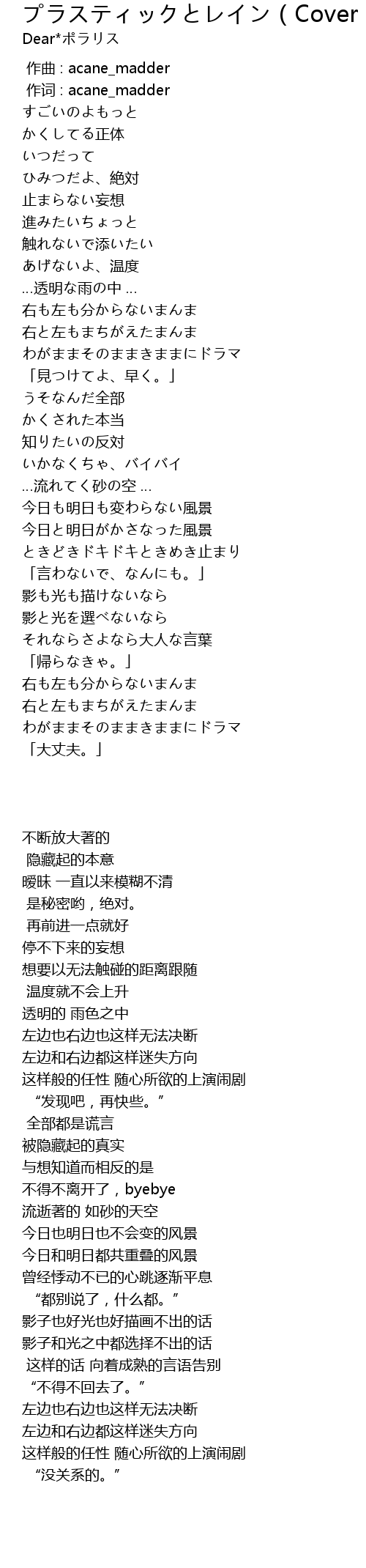 | Song | プラスティックとレイン(Cover:acane_madder) |