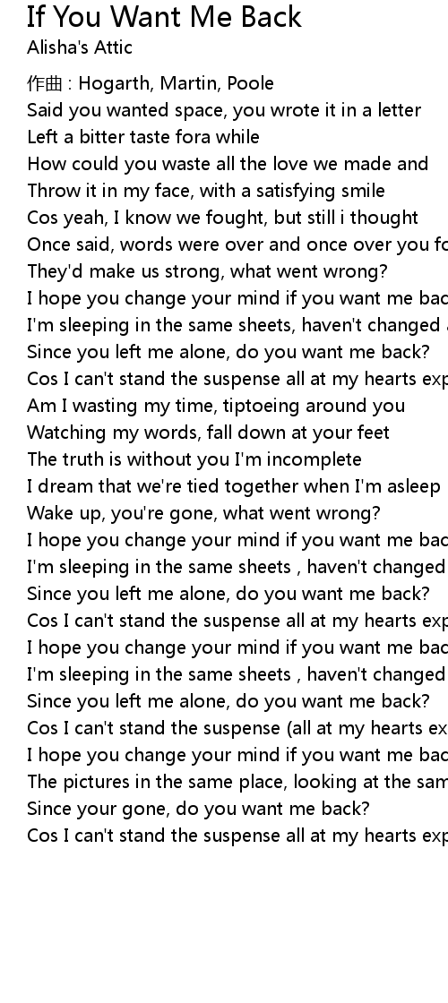 | Since your gone, do you want me back? | |