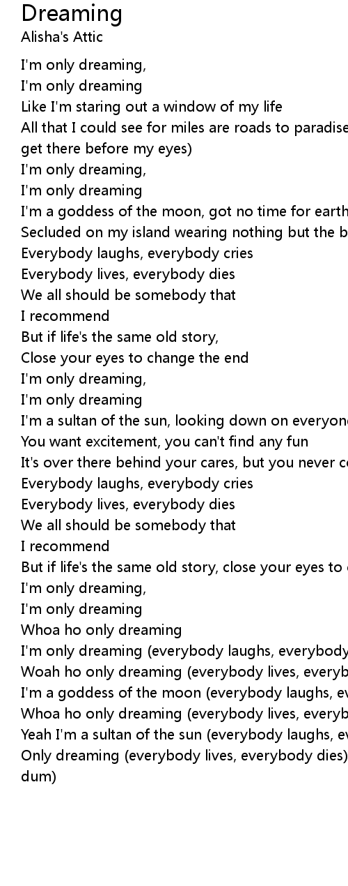 Only dreaming (everybody lives, everybody dies) whoa ho only dreaming (da da da dum) |