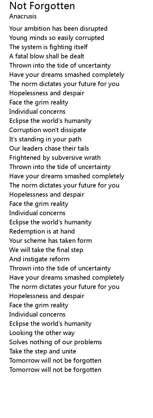 | Tomorrow will not be forgotten |