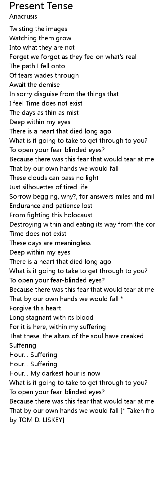 That by our own hands we would fall [* Taken from 'THE SUFFERING HOUR', a poem by TOM D. LISKEY] |