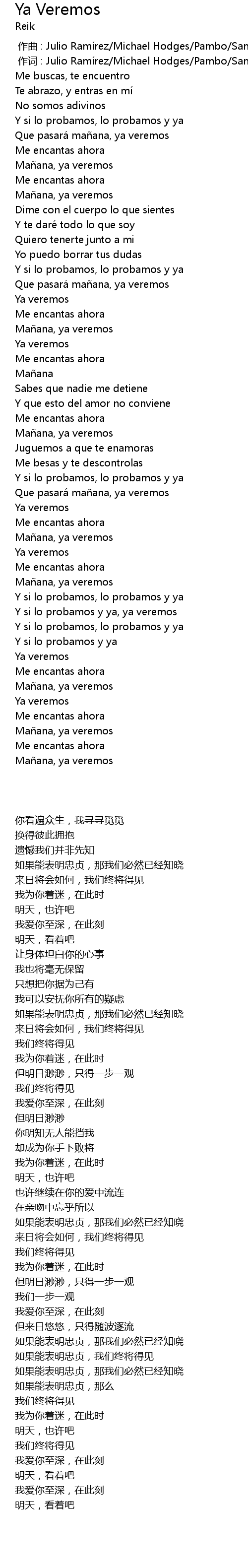 | [00:01.000] | 作词 : Julio Ramírez/Michael Hodges/Pambo/Samy Isaza |
