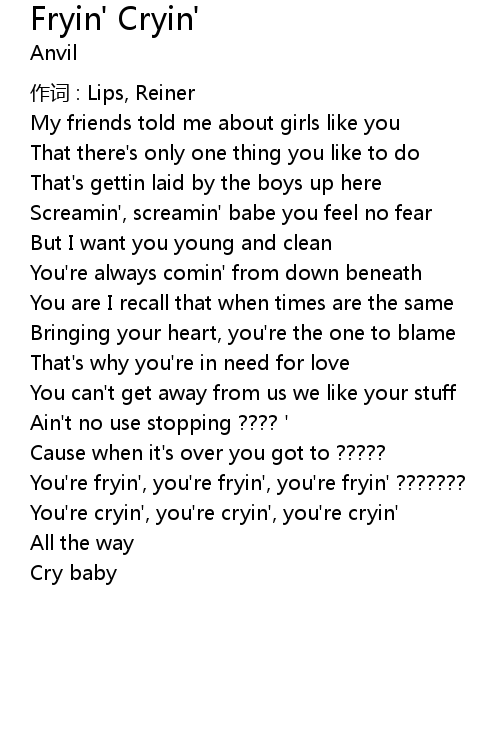 | You' re cryin', you' re cryin', you' re cryin' | |