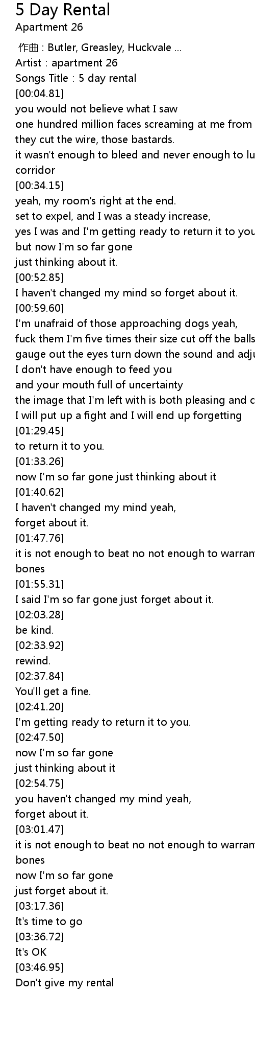 | [03:48.38] | Don't give my rental |