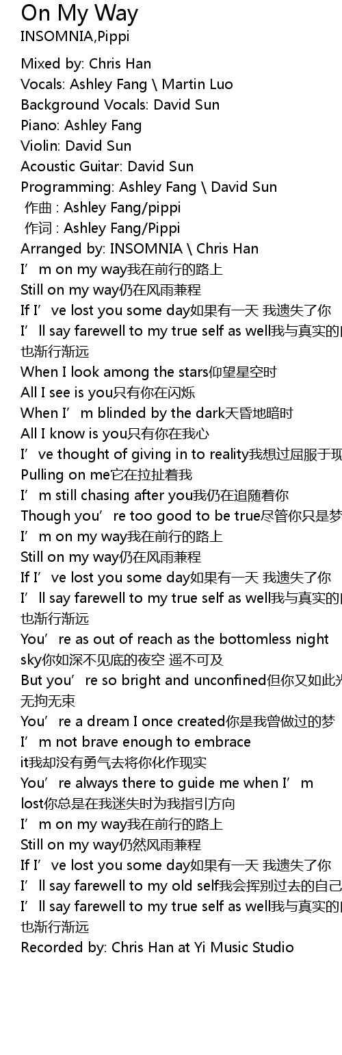 | [02:37.50] | I' m on my way wo zai qian xing de lu shang |