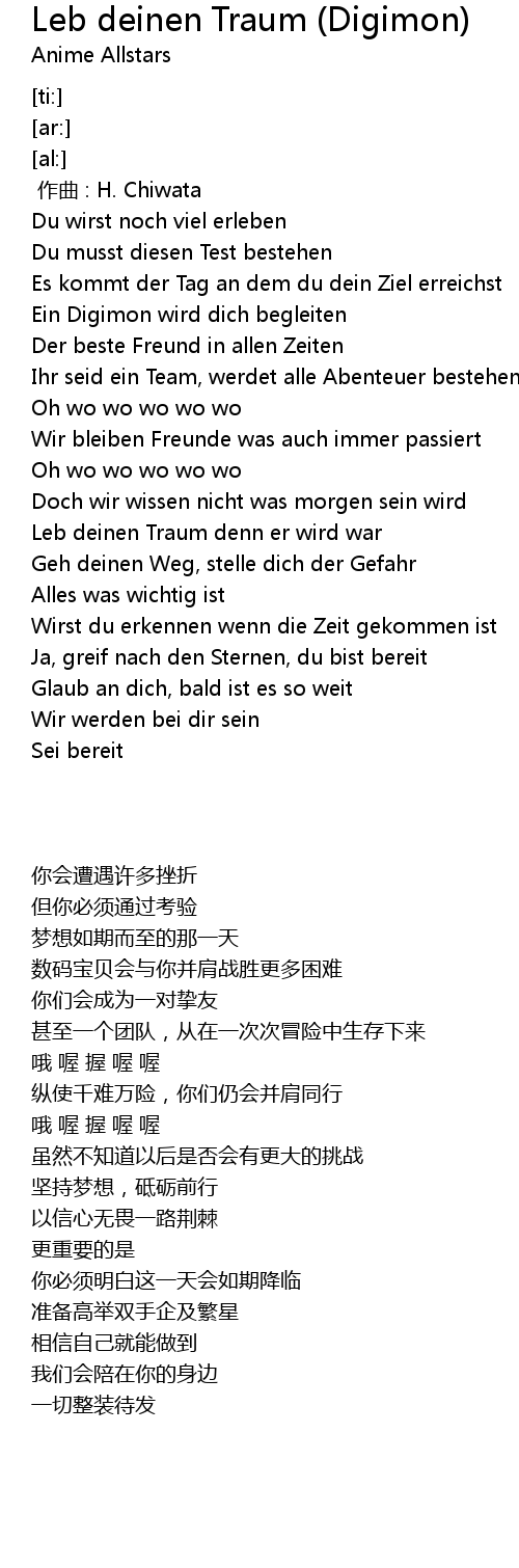 | [00:56.03] | Leb deinen Traum denn er wird war |