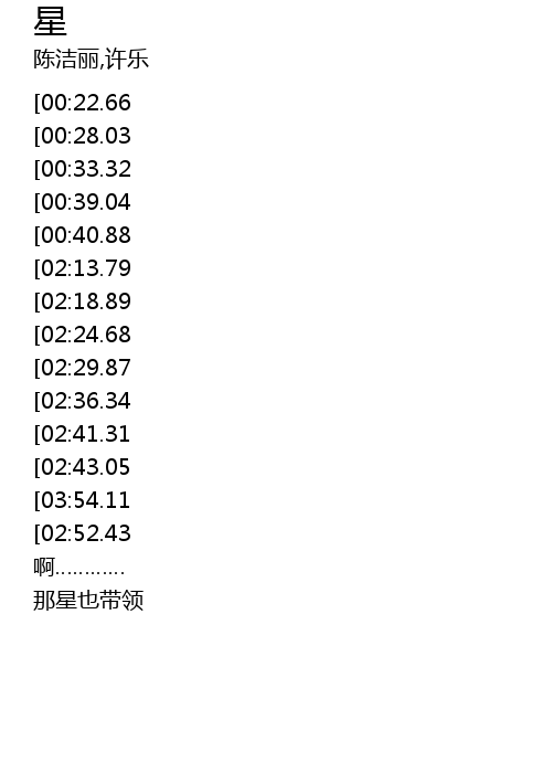| [03:20.36][02:13.79][00:44.73] | 啊 星光灿烂 |