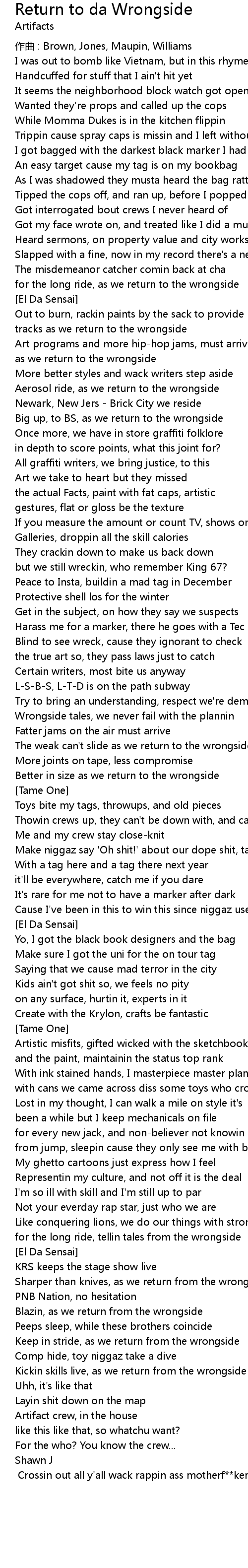 | Song | Return to da Wrongside |