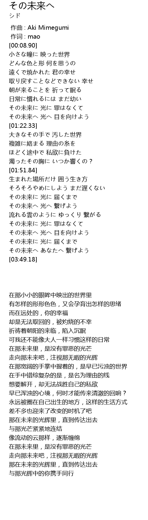| [03:00.63] | その未来に 光に 罪はなくて |