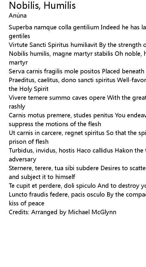 Nobilis humilis, magne martyr stabilis Oh noble, humble, great and steadfast martyr |