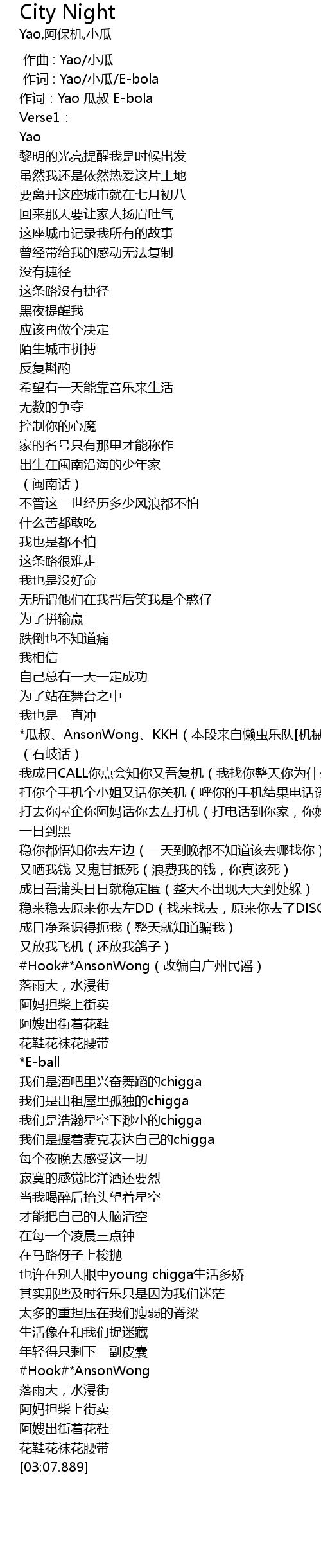 | [01:17.090] | #Hook#*AnsonWong(改编自广州民谣) |