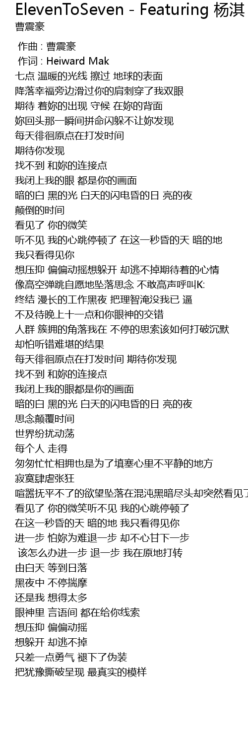 | [00:01.00] | 作词 : Heiward Mak |