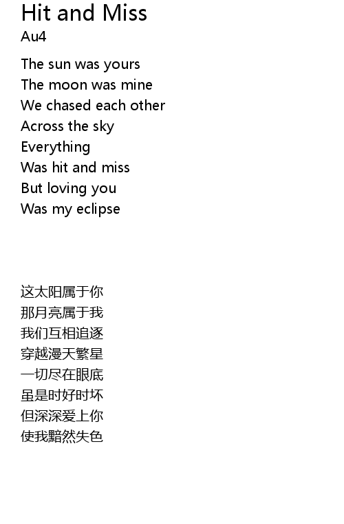 Hit and Miss Lyrics