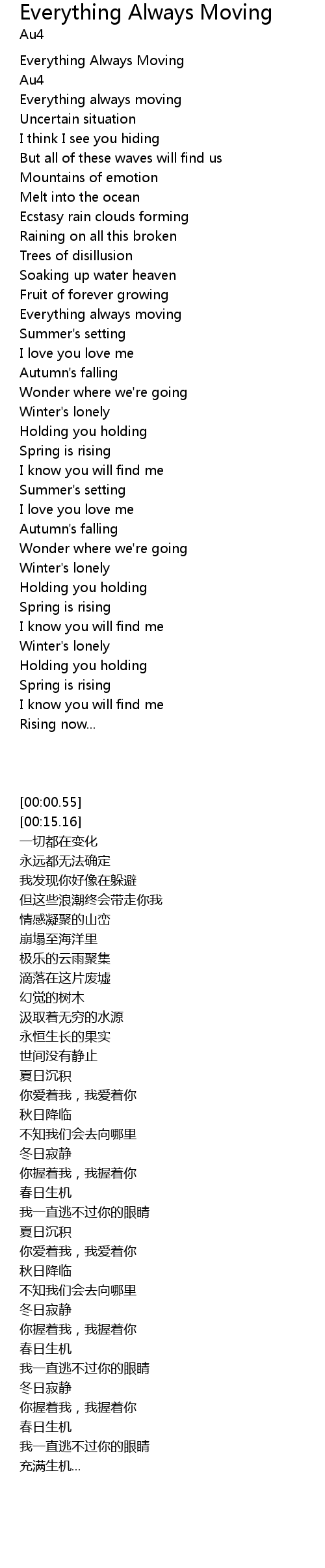 | [00:00.55] | Everything Always Moving |