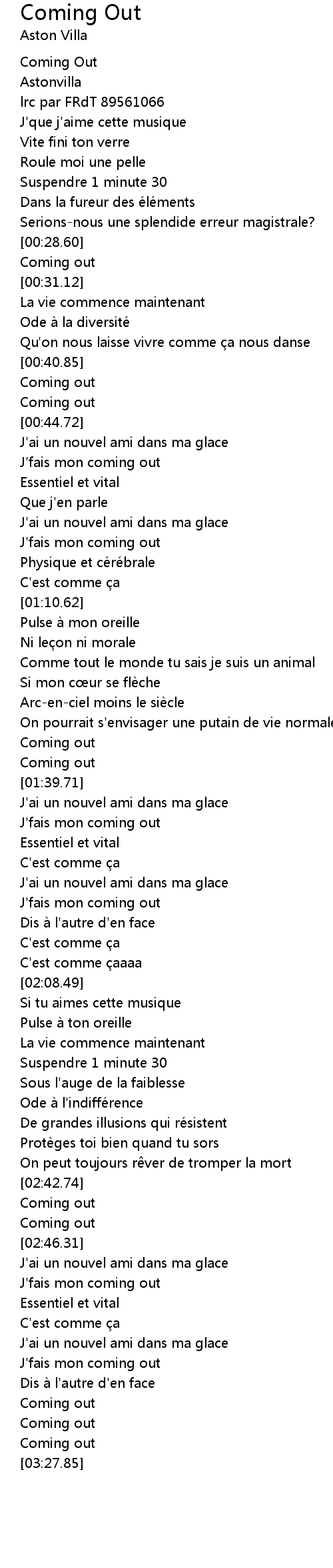 | [03:03.20] | J' fais mon coming out |