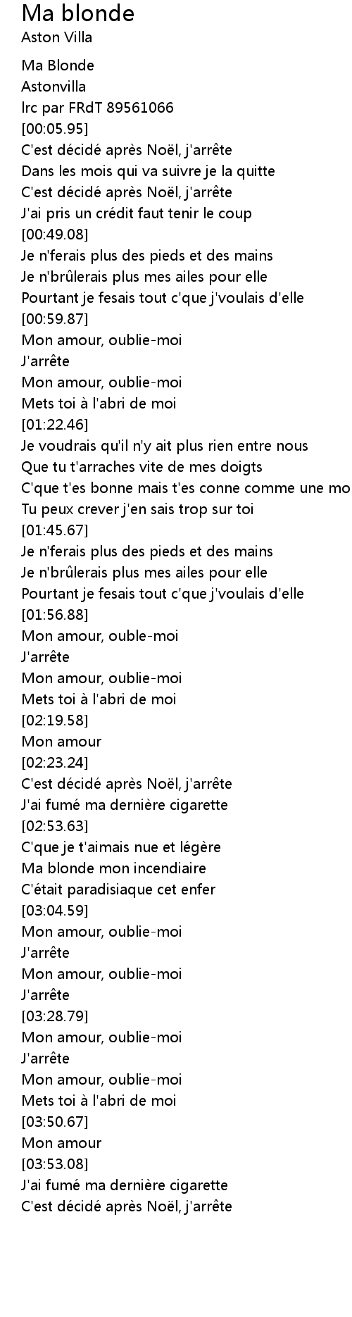| Song | Ma blonde |