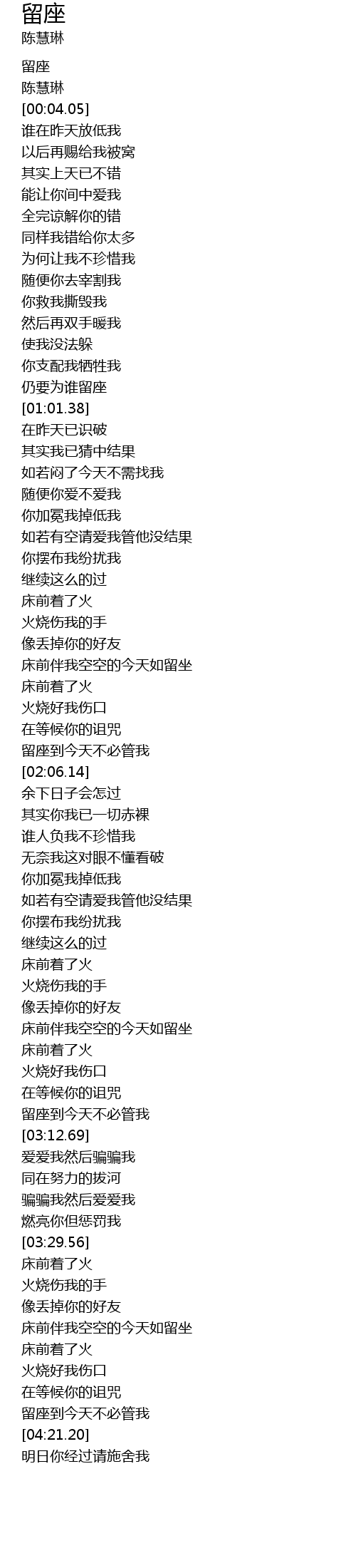| [04:15.45] | liú zuò dào jīn tiān bù bì guǎn wǒ |