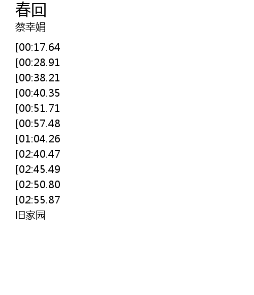 | [02:31.43][00:57.48] | 旧时家园梦里寻 |