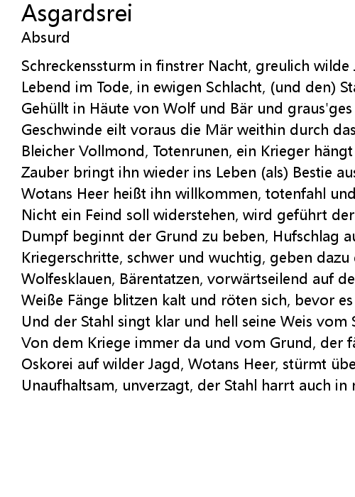 | Lebend im Tode, in ewigen Schlacht, und den Stahl am Blut gelabt. | |