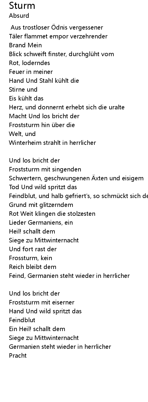 | Song | Sturm |