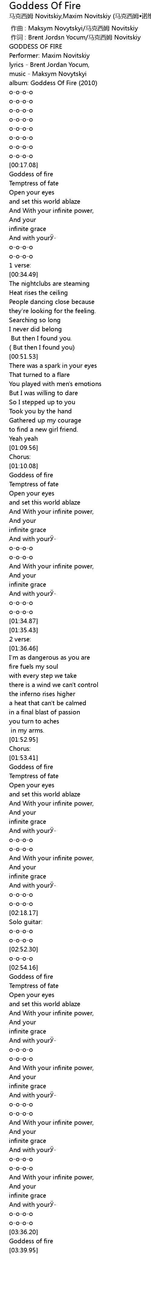 | [00:00.00] | album: Goddess Of Fire (2010) |