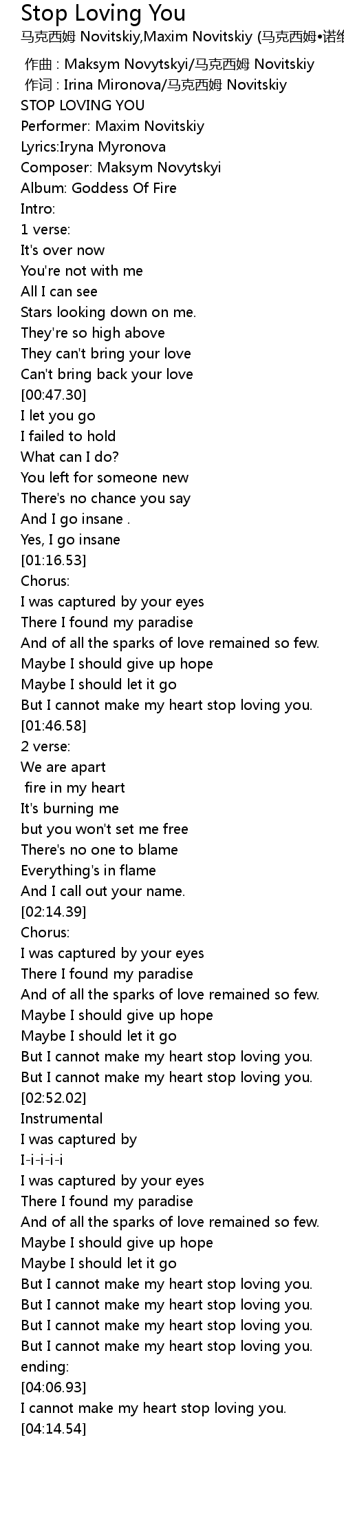 | [03:34.99] | But I cannot make my heart stop loving you. |